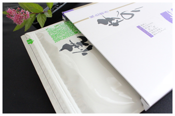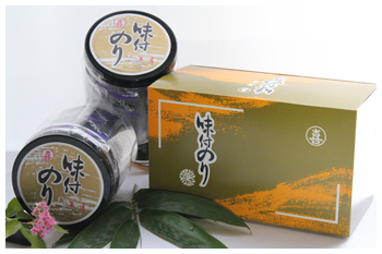 ![]() 焼海苔は、光沢があり高級感のある化粧箱。 味付け海苔は、深みのある色合いに仕上がった |