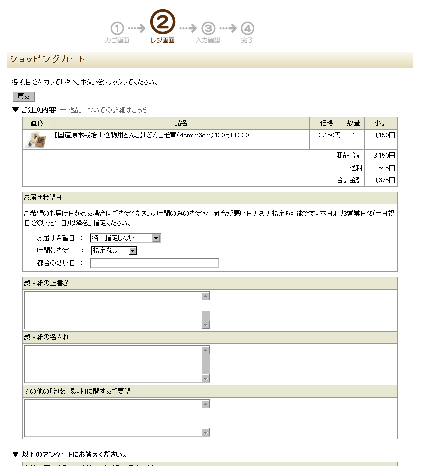ご希望の方は熨斗紙の上書き 、熨斗紙の名入れ、その他の「包装、熨斗」に関するご要望 をご入力ください。 不要の方は空欄または「不要」とご入力ください。 |