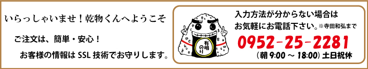![]() | 担当者挨拶 いらっしゃいませ! HPの管理・運営・お客様窓口担当の寺田和弘です! 私が子どものころから慣れ親しんだ、美味しい海苔や干し椎茸を全国の皆様に味わっていただくべく日夜奮闘しています! 私の奮闘振りはこちらのブログからもご覧いただけます。 http://ameblo.jp/kannbutukunn/ お買い上げ頂いた商品やご覧いただいているHPについてなど、ご意見・ご感想などお待ちしています。 |
