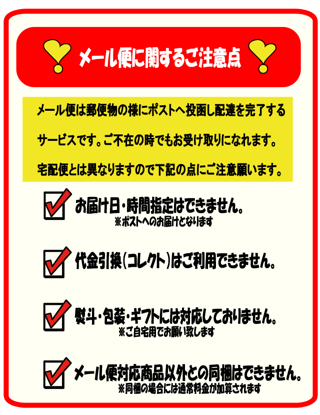 ◆「メール便対応商品」を複数ご購入いただいた場合でも、ご利用できます。