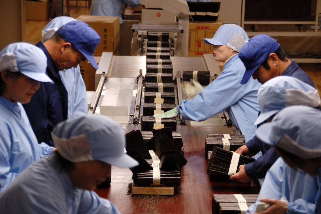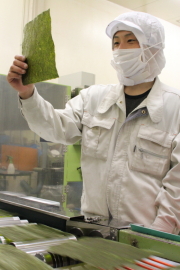 海苔の判断基準に「味・香り・口どけ」があります が、製品の出来上がりを左右するものとして、 「焼き加工・味付け加工」があります。 一言で海苔と言っても採れた海域・生産者により 加工条件は異なります。 乾物くんでは自社工場より、その原料にあった 「焼き加減・タレの付き方」を調整し 産地で仕入れた物を迅速に製品化する事が可能 です。それにより、物流費・諸経費などが削減 され採れたての海苔を鮮度の良いまま出荷 する事が出来ます。 | |