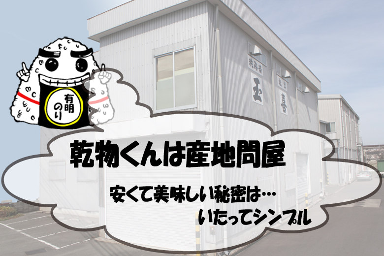 ![]() | ようこそ乾物くんへ 乾物くんは佐賀で知る人ぞ知る海苔問屋、『玉喜』が運営しています。 有明海のお膝元で、素材、製法、品質管理、全てにこだわりぬいた上質な海苔をお届けしています。 |