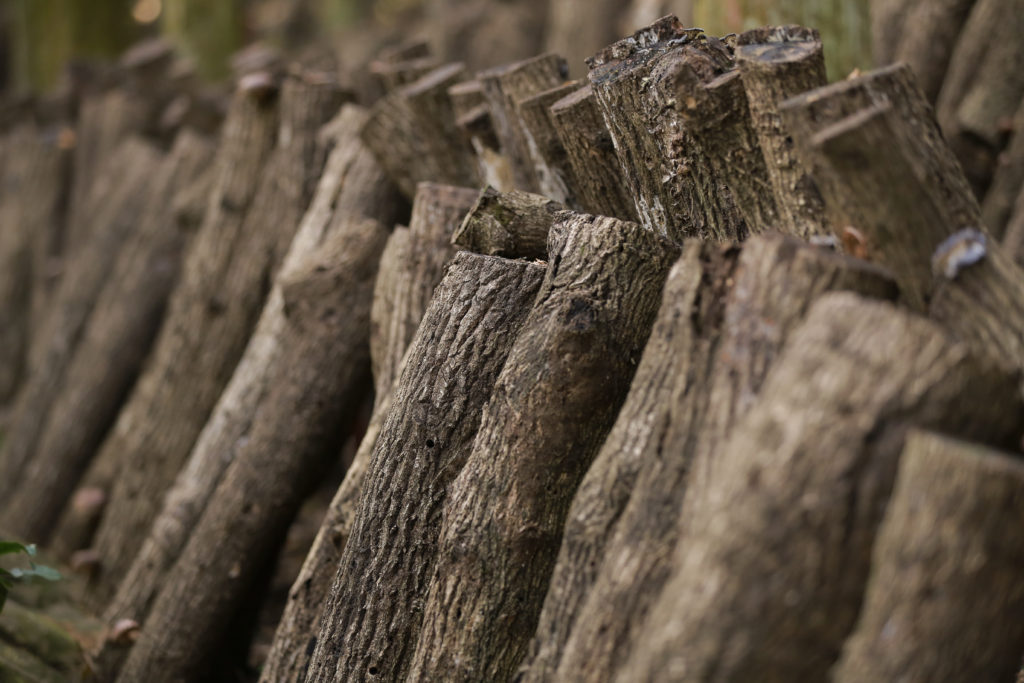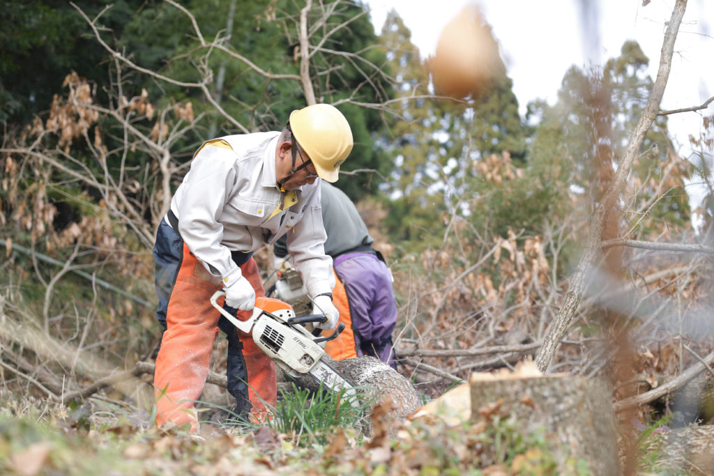 原木は、樹齢15年位のクヌギを使用します。しいたけを作る工程の前にも、クヌギの成長を待つため10年以上の月日が必要です。
